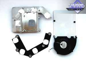 Система охлаждения была тщательно изучена в базовом материале по G70, я лишь напомню, что центральный радиатор с помощью тепловой трубки совмещен с радиатором, охлаждающим память. Далее: устройство в целом очень узкое, однослотовое, что не может не радовать (устали уже от этих громоздких ускорителей). Микросхемы памяти с оборотной стороны охлаждаются узкой пластиной. Кулер в целом очень даже нешумный, только на первых секундах после запуска можно слышать небольшой шум от вращающейся на быстрых оборотах турбины. Шум можно оценить на этом ролике (1.5MB, WMV) (обратите внимание, что турбина запускается не сразу после включения компьютера). | ![]() |