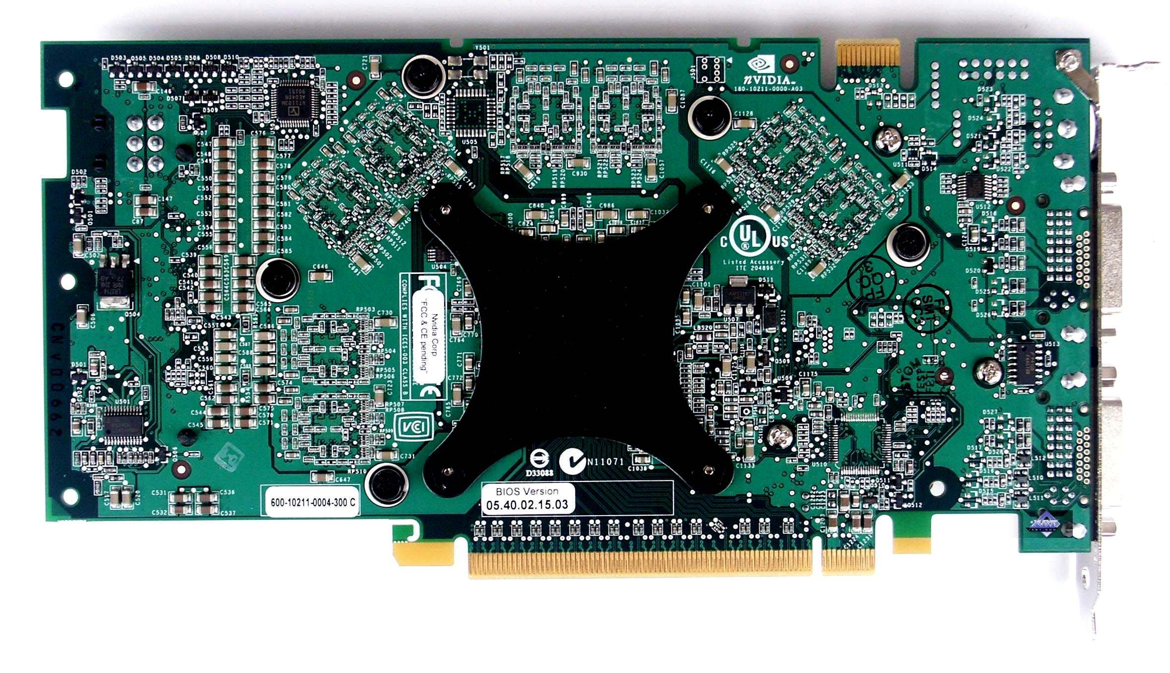 Прекрасно видно, что чипы абсолютно идентичны с визуальной точки зрения. Никаких мостиков и различий на подложке GPU не обнаружено. Следовательно, отключение четырех пиксельных и одного вершинного конвейера было сделано или внутри самого кристалла, или с помощью программируемых регистров, или через BIOS. Два последних способа дают шанс на разблокирование. Первый — можно проститься с мечтой о переделке GT в GTX. К прискорбию оверклокеров, выяснится, что именно на первый способ и вышли разработчики из NVIDIA. Но об этом ниже.