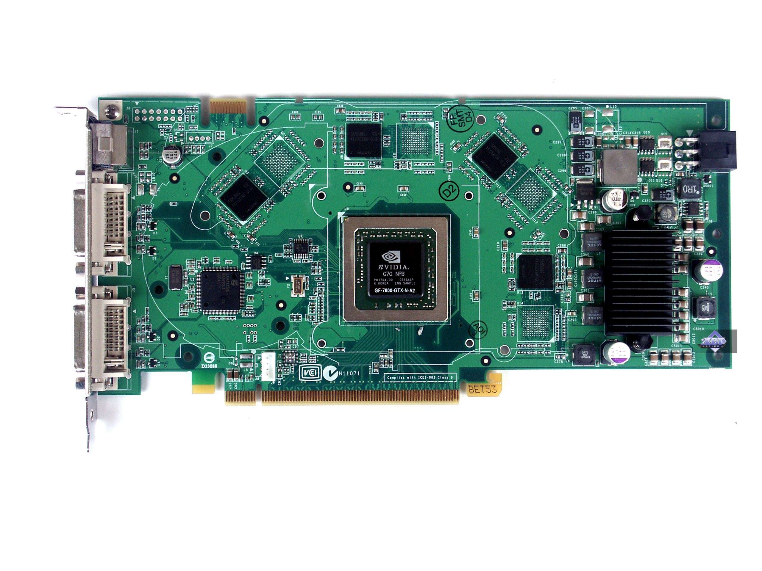 Полагаю, что нет смысла комментировать сами платы, они являют собой копии reference card и потому уже все, что можно было сказать о них, я сказал ранее (читайте наши материалы, список внизу).  Стоит упомянуть, что 7800 GTX снабжена парой гнезд DVI и имеет контакты для объединения в SLI-тандем.