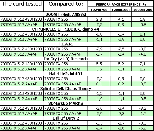 | NVIDIA GeForce 7800 GTX 512MB | Reference card NVIDIA GeForce 7800 GTX 256MB |