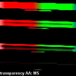 В режиме transparency adaptive supersampling для наших тестовых изображений видеочип очевидно начинает выполнять полноценный суперсэмплинг с той же кратностью, с который должен был работать мультисэмплинг. Используя при этом мультисэмплинг для непрозрачных объектов. Получаем идеальное качество изображения, даже нечего и добавить.
