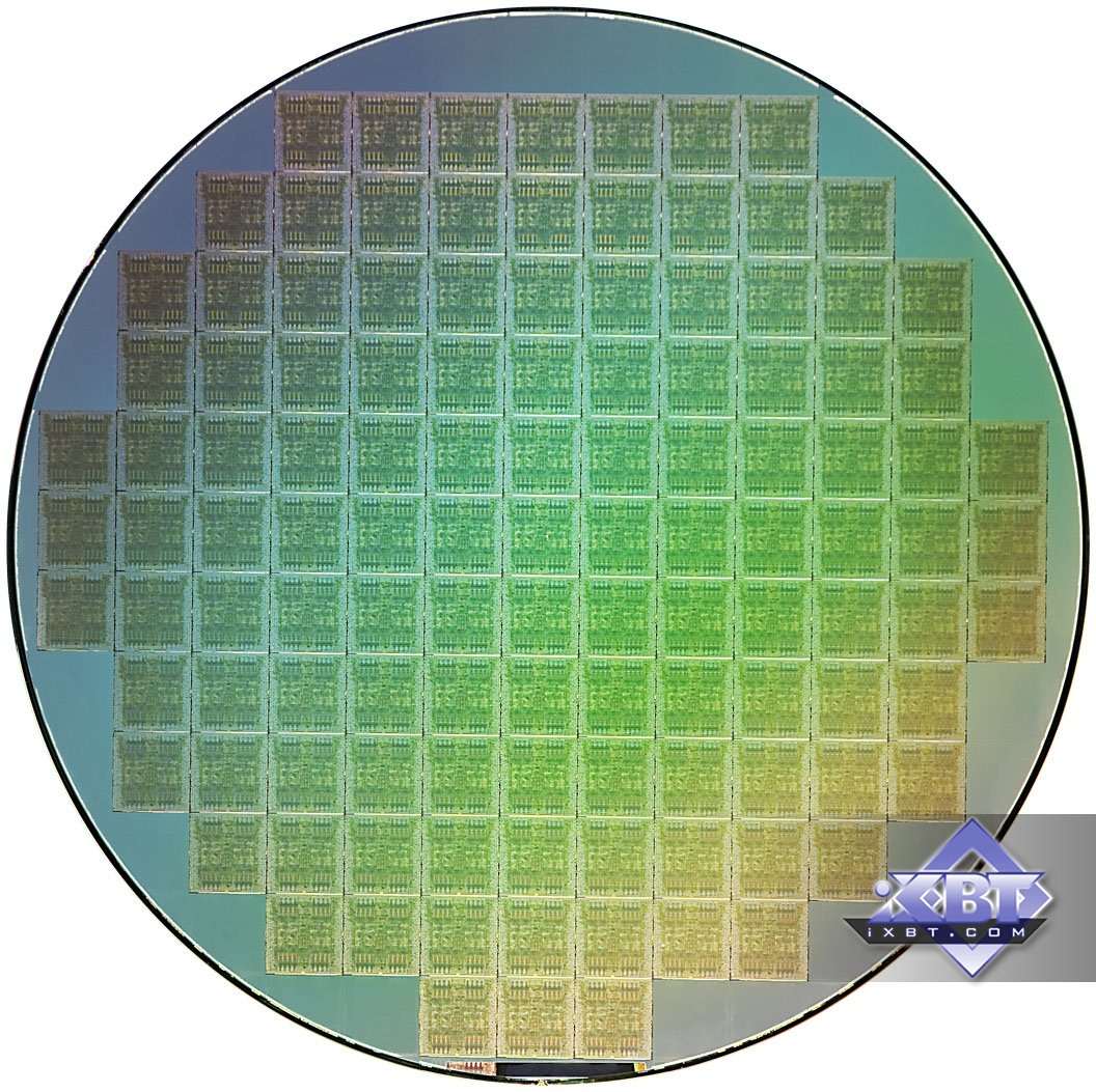 Так выглядит пластина с этими кристаллами. Надо сказать, что опытному глазу уже становится видно, что размеры у последних очень велики. Да, новое ядро состоит из 681 миллиона транзисторов! Это даже намного больше, чем имеет самый суперсовременный четырехядерный процессор от Intel!