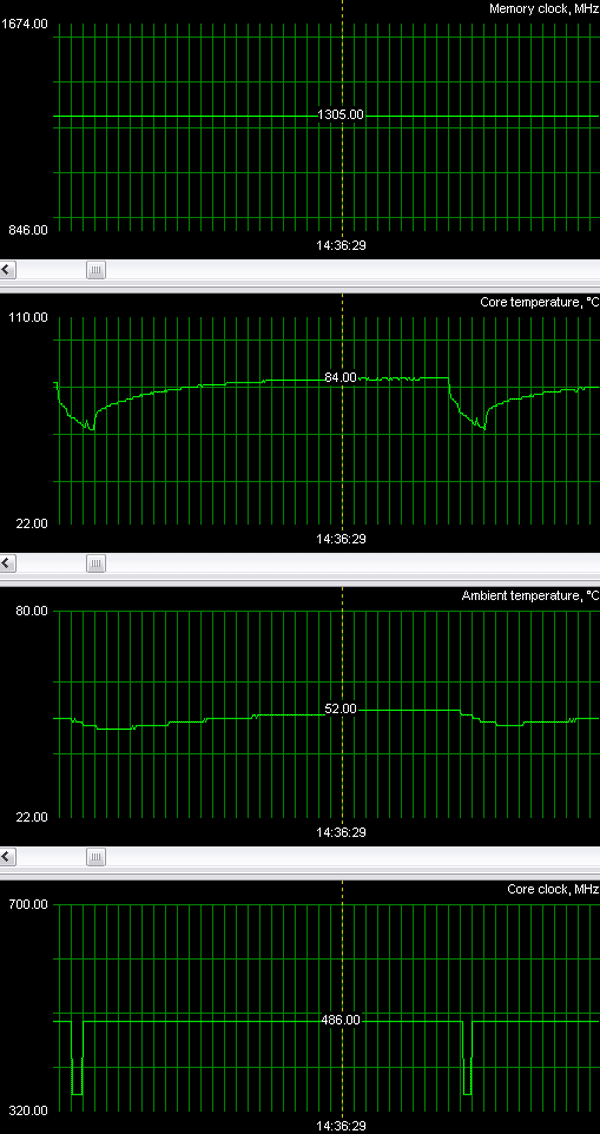 У 6800 GS нагрев оказался немного выше, поскольку частоты работы были подняты намного выше, чем в предыдущем случае.