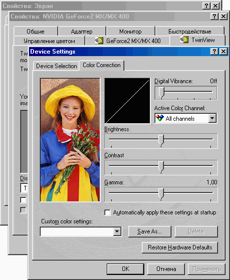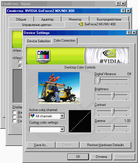 Настройка "коррекция цвета" для Detonator 7.xx 29.xx.