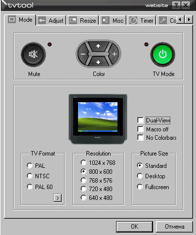 Примечание: TVTool, при всех своих достоинствах, не поддерживает мультимониторность. Это не было критично при работе с картами на базеGF2 и GF3, но для желающих полноценно использовать TwinView (nView) на картах GF4 рекомендовать ее, пожалуй, не будем. Для них следующий раздел :