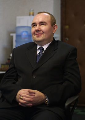 Утро. Главный редактор видеораздела Андрей Воробьев в ожидании начала презентации: