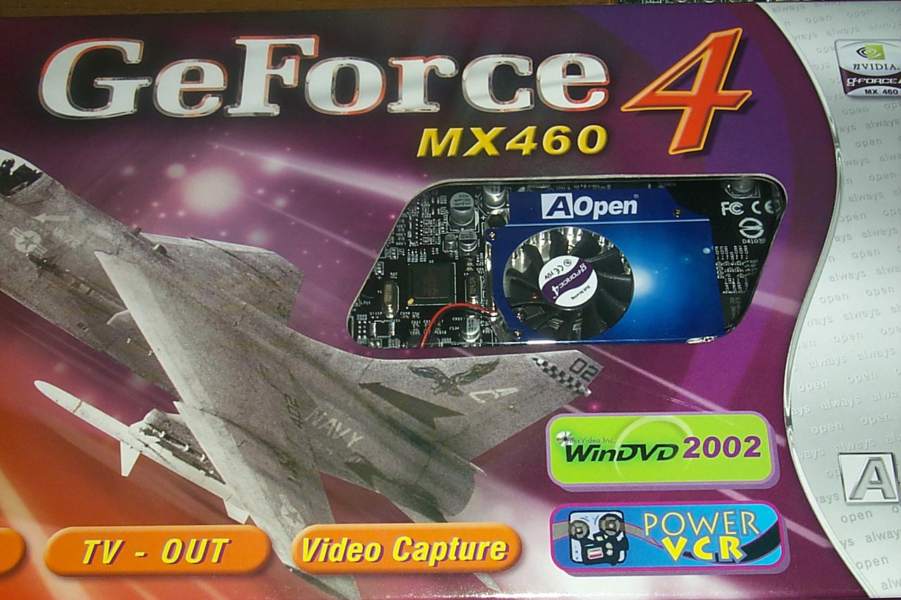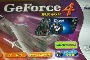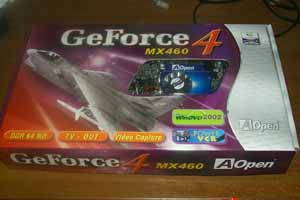 - AOpen GeForce4 MX 460 рядовой продукт на базе эталонной карты, снабженный VIVO. Отменное качество изготовления, стильная поставка могут сыграть хорошую роль в выборе. Однако мы знаем и другое: дефицит видеокарт от AOpen в России и высокие цены на них.