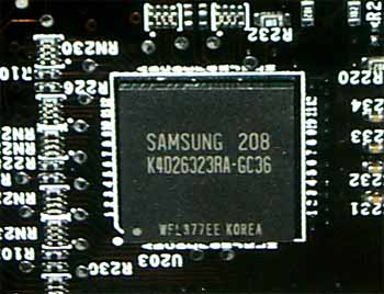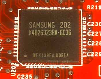 | Память производства Samsung, время выборки 3.6ns. Частота работы видеокарты 270/250 (500) МГц. | ![]() |