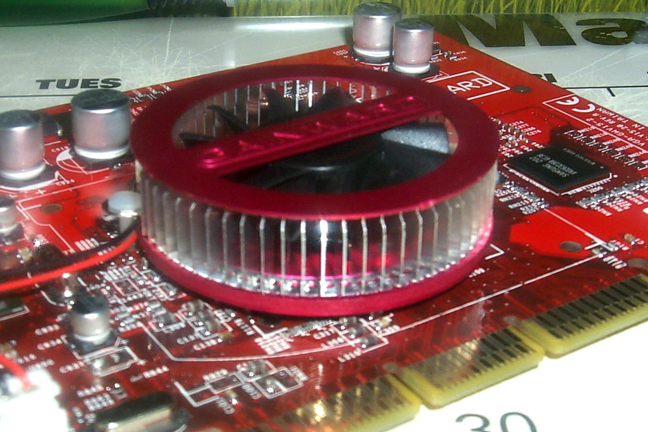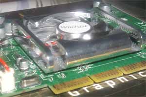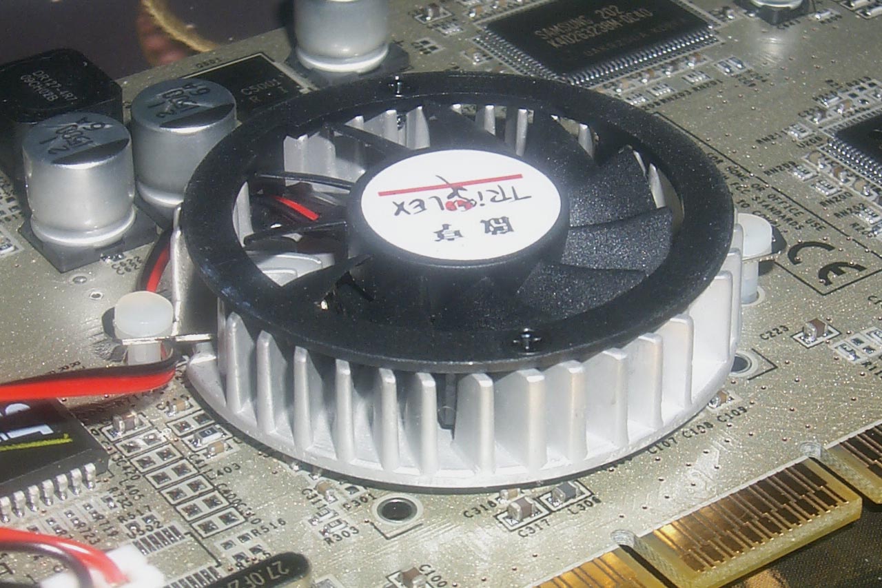 У видеокарты от Triplex кулер настолько жестко приклеен к чипу, что я не решился его снять, потому как была опасность повреждения карты.
