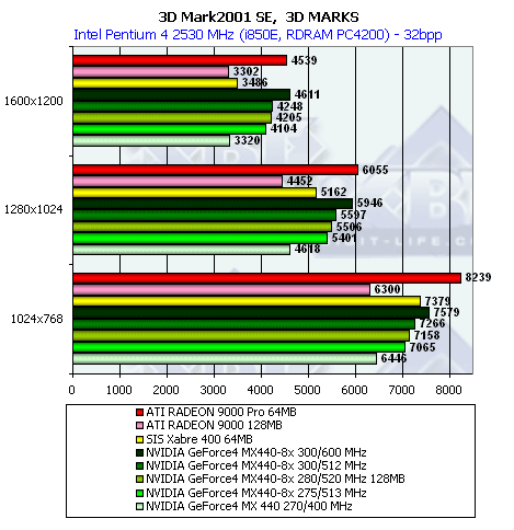 И нельзя забывать, что ATI RADEON 9000 Pro поддерживает в полном объеме DirectX 8.1, а NV18 (MX440-8x) только может "делать вид", что поддерживает вершинные шейдеры, пиксельные же не поддерживает вообще.