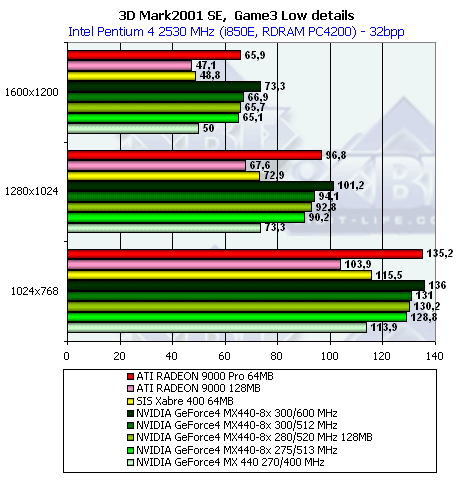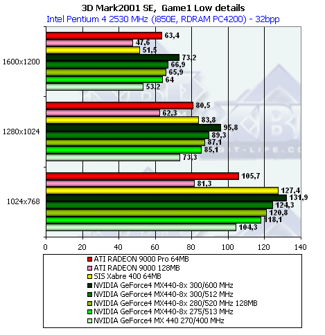 - Тестирование на базе Pentium 4 2533 МГц, 1024x768, Game3 Low