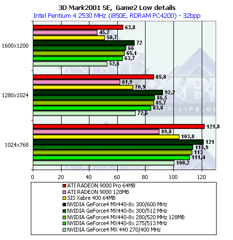 Таким образом, сегодня мы рассматриваем MX440-8x как нового конкурента ATI RADEON 9000 и SIS Xabre400.