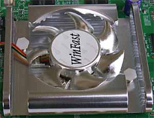 Коротко остановлюсь на особенностях карты от Leadtek. Как уже широко известно, эта компания выпускает серию TDH (TH), которая отличается наличием аппаратного мониторинга состояния карты. Мы уже рассматривали несколько видеокарт, наделенных такой функцией, поэтому желающие узнать подробности могут это сделать, зайдя в раздел Видеосистема на нашем сайте. Я отмечу, что мониторинг предусматривает контроль за температурным режимом работы карты и частотой вращения вентилятора на кулере на чипе. Составной частью мониторинга является индикация работы карты при помощи светодиодов, которые сообщают о перегреве, об активизации режима AGP 8x. Реализуется мониторинг при помощи утилиты WinFox II, которая поставляется на диске вместе с драйверами.
