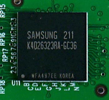 | Память производства Samsung, время выборки 3.6ns. Частота работы видеокарты 275/256 (513) МГц. | ![]() |