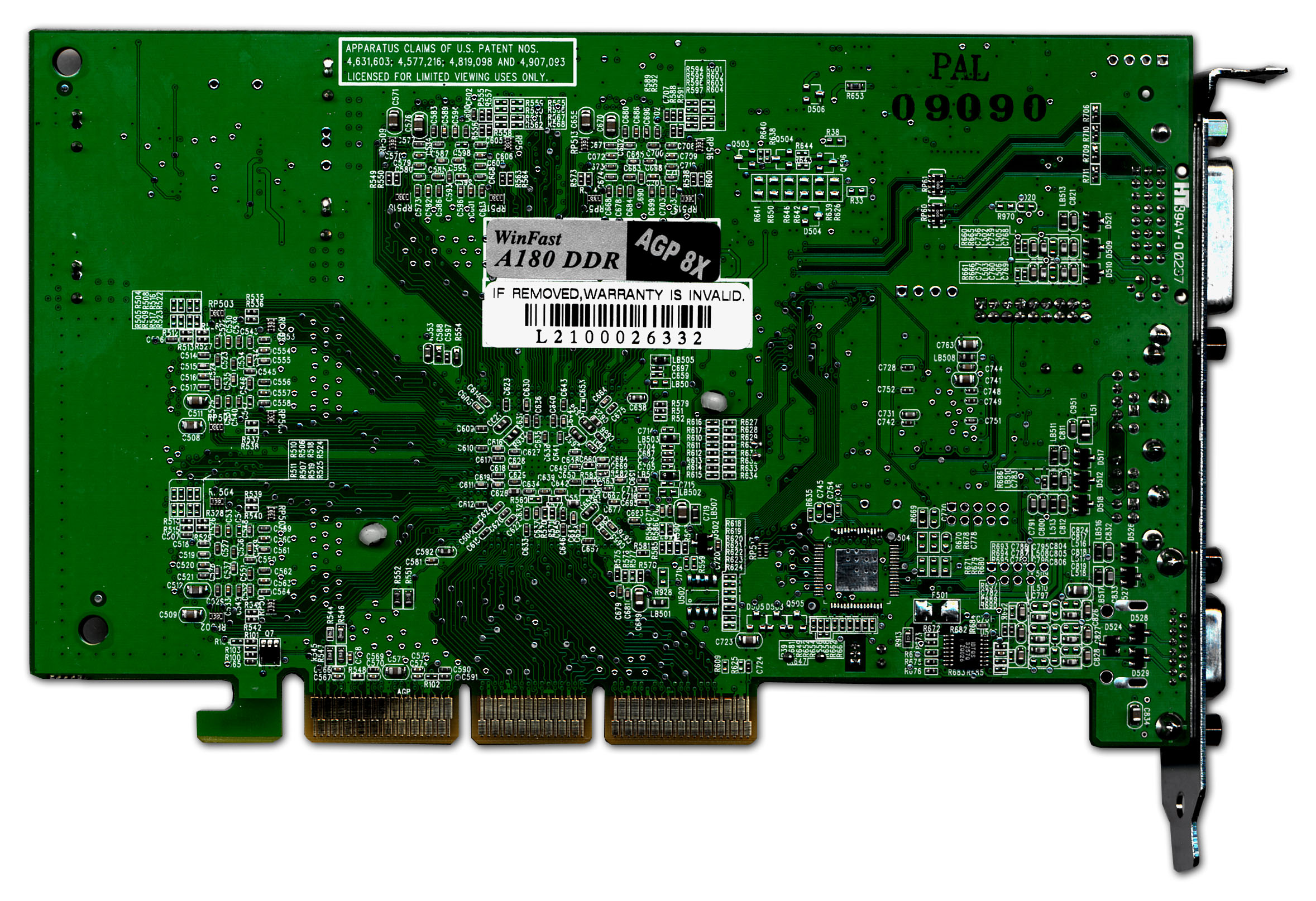 - Leadtek WinFast A180 DDR TH MyVIVO образец для других компаний по комплектации и поставке. Несмотря на то, что ныне возможности МХ440 (даже с AGP 8x) весьма скромны для современных игр, карта от Leadtek очень симпатична, и если цена не будет сильно задрана, то найдет своего покупателя. К тому же плата обладает поддержкой Video-In, да и про аппаратный мониторинг стоит еще раз напомнить.