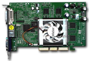 Отметим, что разработчики из Gainward и Albatron на высоте. Особенно это касается Gainward. Несмотря на то, что карта использует полностью эталонный дизайн, они снабдили ее более быстрой памятью (3.3нс), а также отбирали чипы с гарантированной работоспособностью на 300 МГц. Поэтому пользователь имеет возможность эту карту сразу запустить на 300/600 МГц без опаски за перегрев. То же касается и карты от Albatron, несмотря на то, что карта снабжена 3.6ns памятью. Интересно отметить, что перед нами фактически MX 460: чип на 300 МГц, память 3.6ns, способная работать в штатном режиме на 275 (550) МГц.
