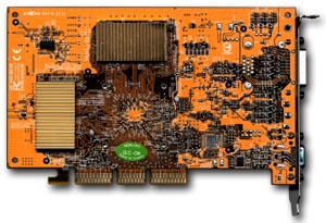 - Albatron GeForce4 MX480 ничем внешне не примечательная карта, однако у нее есть два очень важных достоинств: повышенная частота работы чипа и относительно низкая цена. Все остальное - в точном соответствии с рекомендациями NVIDIA. Отмечу, что качество картинки на телевизоре, полученное через реализованный в самом GPU TV-out, мне понравилось лучше, чем качество подобной картинки, получаемой через внешние кодеки.