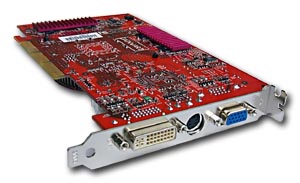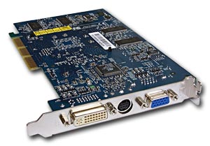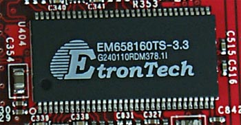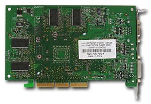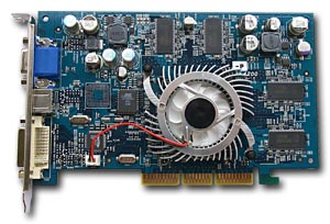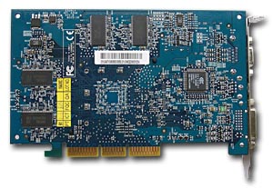 | Карта имеет AGP x2/x4 интерфейс, 64 МБ DDR SDRAM памяти, размещенной в 8-ми микросхемах на обеих сторонах PCB. На видеокарте установлены модули памяти от EtronTech со временем выборки 3.3ns, что соответствует примерно частоте работы 300 (600) МГц, память же работает на частоте 256 (513) МГц. GPU функционирует на частоте 250 МГц. | ![]() |