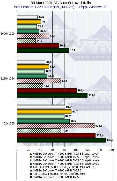 - Тестирование на базе Pentium 4 2200 МГц, 1024x768, Game3 Low