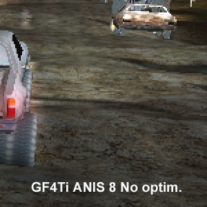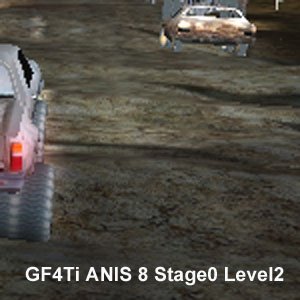 Как мы уже многократно говорили, эта функция у карт семейства GeForce4 Ti является очень и очень "прожорливой", и производительность падает подчас больше, чем на 50-55% при активизации анизотропии уровня 8. Несмотря на то, что реализация анизотропки у NVIDIA — наиболее честная, и обрабатываются все без исключения поверхности вне зависимости от угла наклона плоскостей объектов относительно взгляда пользователя, все же чрезвычайно сильное падение скорости при включении этой функции сильно расстраивает и раздражает. Подробности о реализации анизотропной фильтрации у ATI и NVIDIA можно узнать из наших 3DGiТогов, в разделе, посвященном анизотропке.