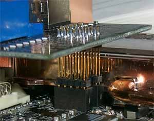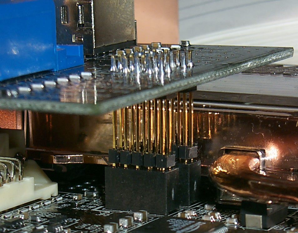 Эта "дочка" соединяется с основной картой при помощи вот таких длинных штырей: