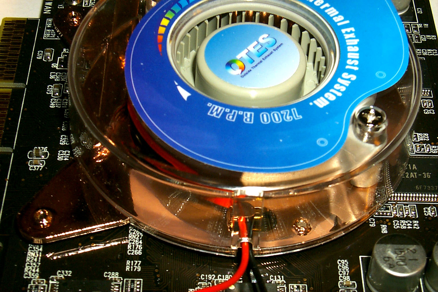 Перед тем, как познакомиться с кулером, который и приводит в действие эту всю систему, отмечу, что я решил опробовать эффективность этого способа охлаждения и измерить температуру на чипе при помощи внешнего термодатчика, который поставляется с некоторыми системными платами:
