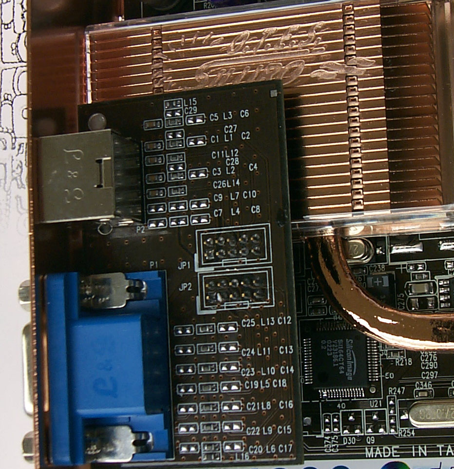 При этом d-Sub и Tv-out вынесены на дочернюю плату, а гнезда выведены на "втором" брэкете:
