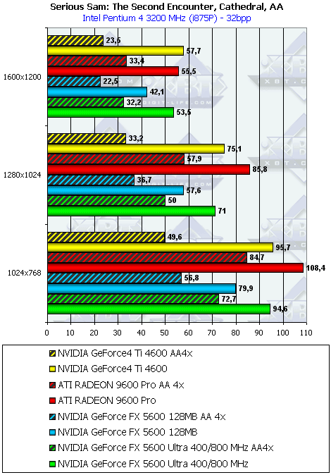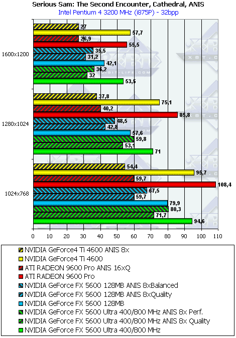- Serious Sam: The Second Encounter v.1.05 (Croteam/GodGames) OpenGL, мультитекстурирование, Grand Cathedral demo, настройки тестирования: quality, S3TC OFF