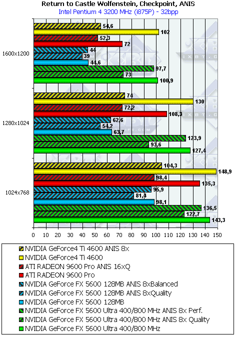 - Return to Castle Wolfenstein (MultiPlayer) (id Software/Activision) OpenGL, мультитекстурирование, Checkpoint-demo, настройки тестирования все на максимально возможном уровне, S3TC OFF, конфигурации можно скачать тут