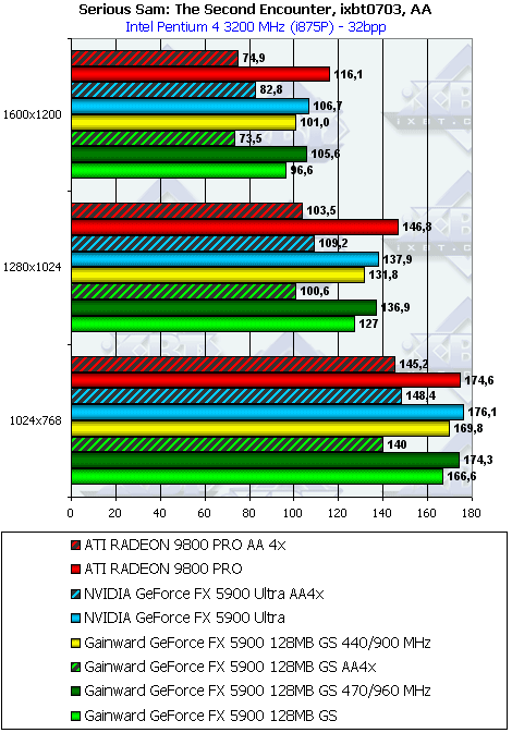 • Serious Sam: The Second Encounter v.1.05 (Croteam/GodGames) — OpenGL, мультитекстурирование, ixbt0703-demo, настройки тестирования: quality, S3TC OFF