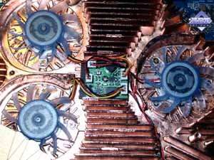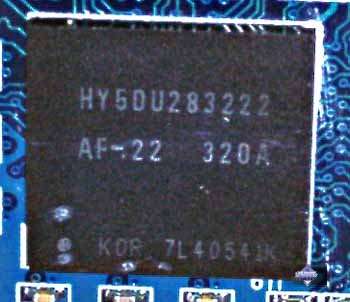 | Микросхемы памяти производства Hynix. Время выборки у микросхем памяти 2.2ns, что соответствует частоте работы примерно 454 (908) МГц, память же работает на частоте 425 (850) МГц. Частота работы GPU 400 MHz. Интерфейс обмена с памятью 256 бит. | ![]() |