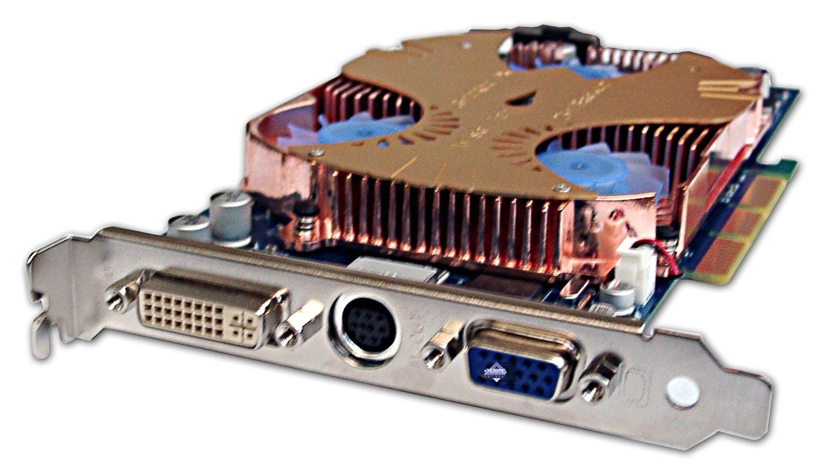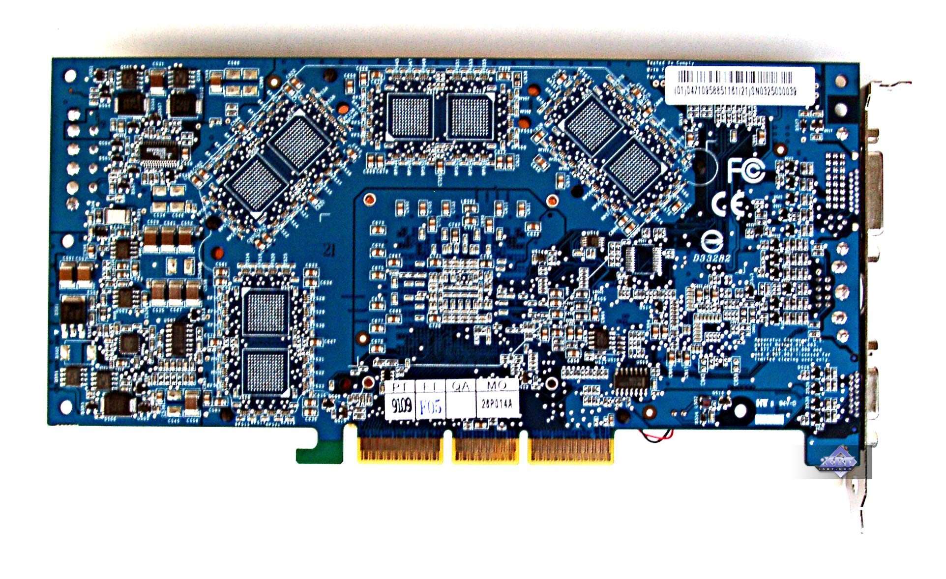 | Карта имеет интерфейс AGP x8/x4/x2, 128 МБ памяти DDR SDRAM , размещенной в 8-ми микросхемах на лицевой стороне PCB. | |