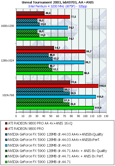 Ну а что касается сравнения с RADEON 9800 PRO, то выигрыш только при АА и маленький при АА+Анизотропия performance.