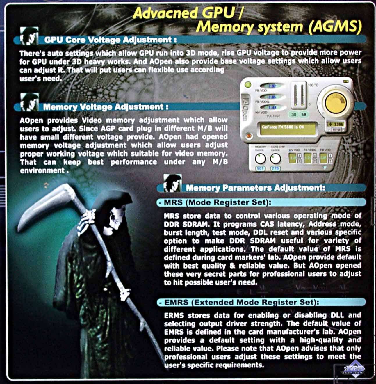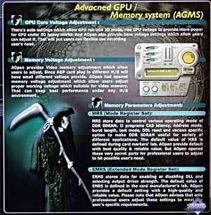 Это ничто иное, как улучшенный мониторинг. Эта технология позволяет не только следить за вольтажом на ядре и памяти, но управлять этими параметрами. Кстати, эта же технология может оказать услугу в тех случаях, когда у системной платы проблемы с питанием на AGP (например, вольтаж чуть меньше номинала).