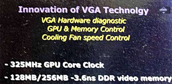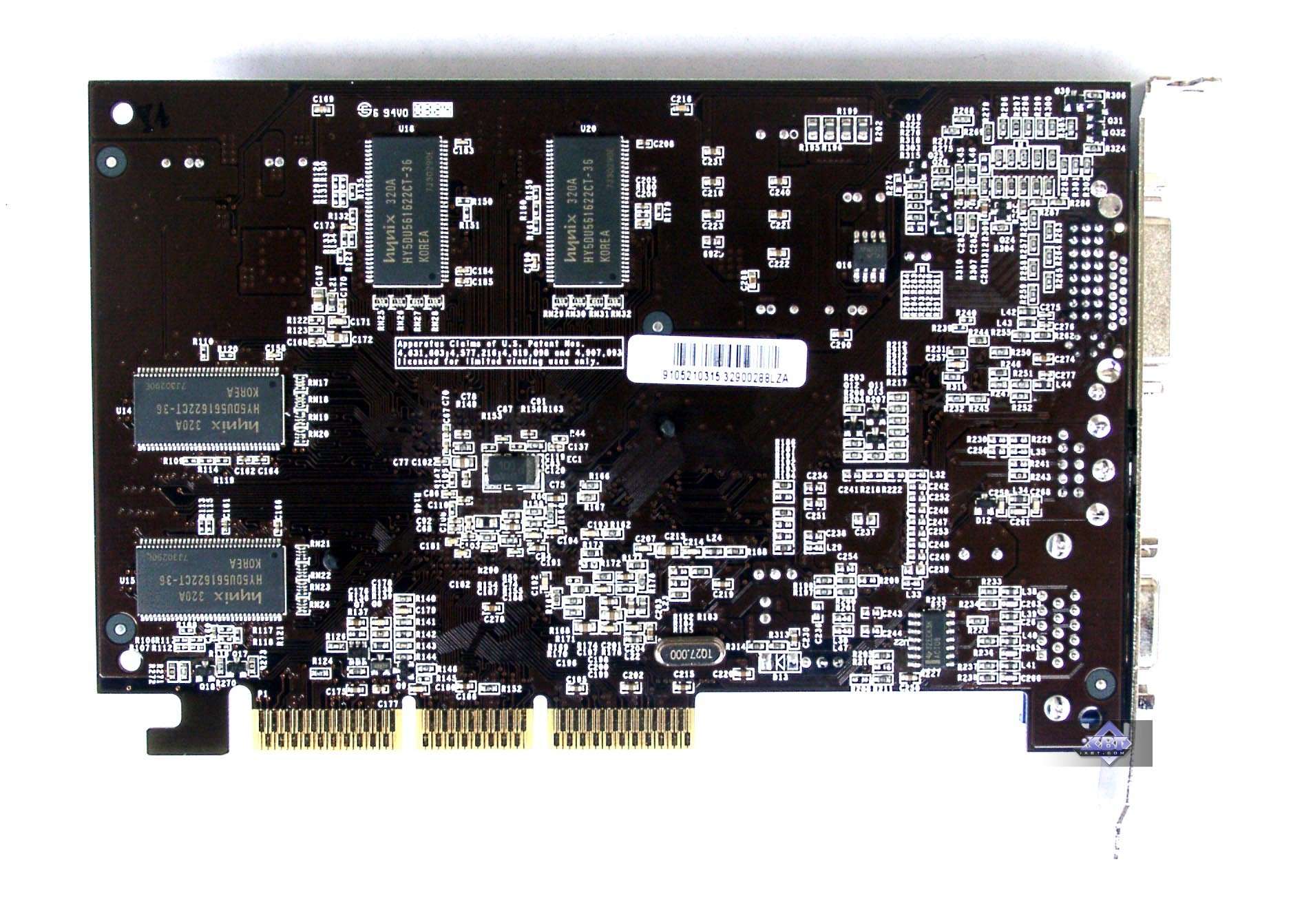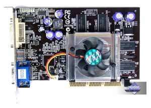 | Карта имеет интерфейс AGP x8/x4/x2, 256 МБ памяти DDR SDRAM , размещенной в 8-ми микросхемах на лицевой и оборотной сторонах PCB. Микросхемы памяти производства Hynix. Время выборки у микросхем памяти 3.6ns, что соответствует частоте работы примерно 275 (550) МГц, память же работает на частоте 250 (500) МГц. Частота работы GPU 325 МГц. Интерфейс обмена с памятью 128 бит. | ![]() |