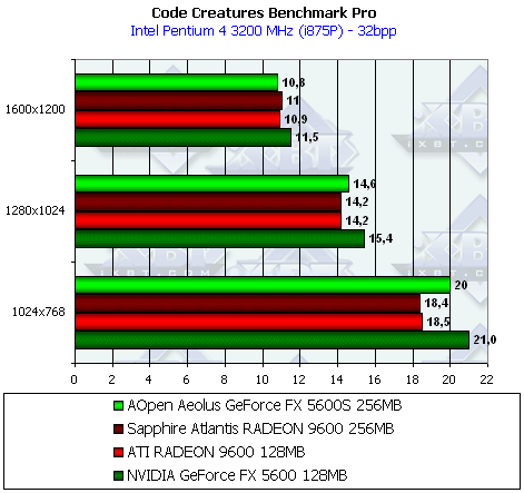 - Code Creatures Benchmark Pro (CodeCult) игровой тест, демонстрирующий работу платы в DirectX 8.1, Shaders, HW T&L.