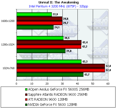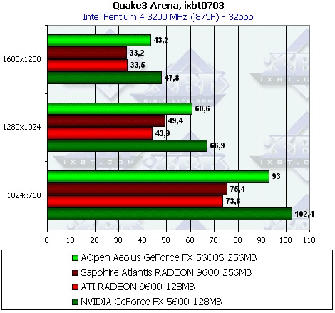 Ожидаемый результат относительно 128-мегабайтного FX 5600 с более быстрой памятью, а также опережение соперников из стана ATI.