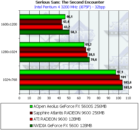 - Serious Sam: The Second Encounter v.1.05 (Croteam/GodGames) OpenGL, мультитекстурирование, ixbt0703-demo, настройки тестирования: quality, S3TC OFF