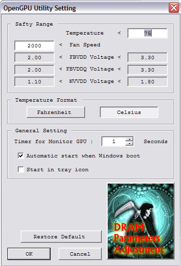 Все настройки, касающиеся вольтажа и частоты работы вентилятора, сохраняются во флеш-памяти самой карты, и потому после перезагрузки или выключения компьютера ничего не теряется.