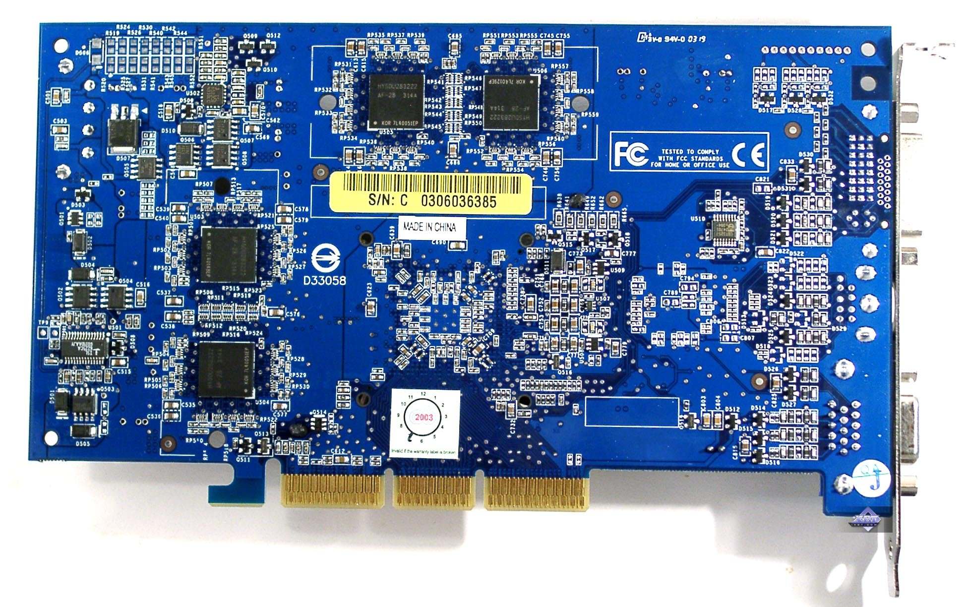 | Карты имеют интерфейс AGP x8/x4/x2, 128 МБ памяти DDR SDRAM , размещенной в 8-ми микросхемах на лицевой и оборотной сторонах PCB. | |