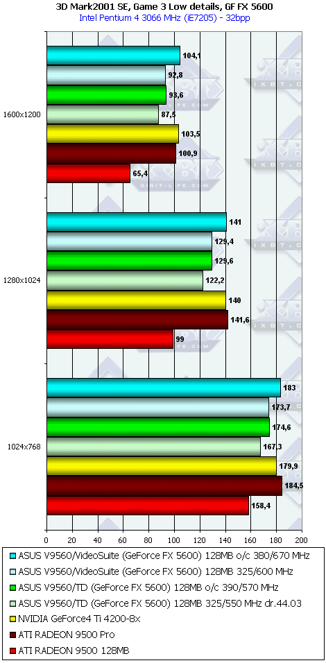 С большой натяжкой можно говорить о примерном равенстве с конкурентами со стороны GF FX 5200. А вот у 5600