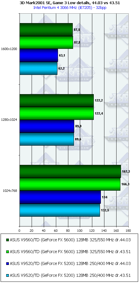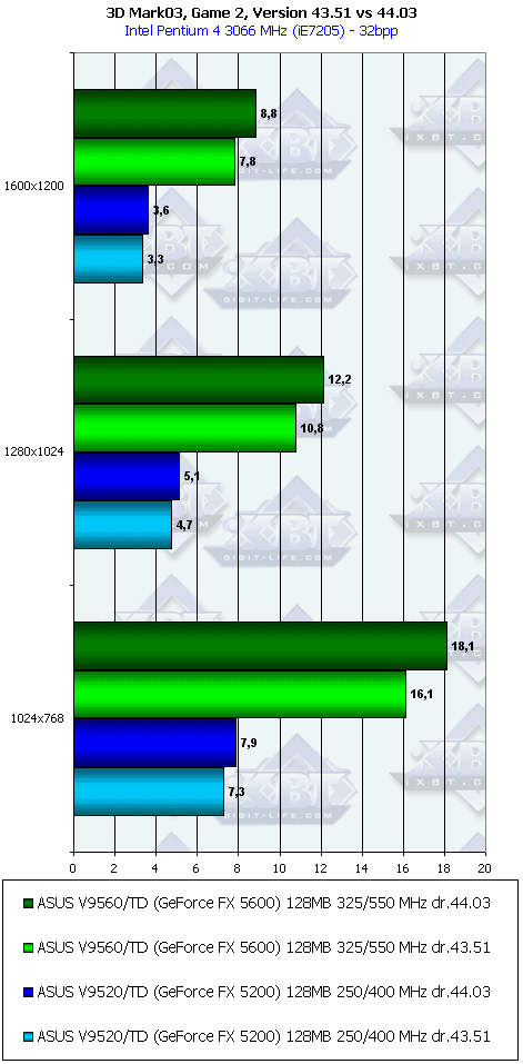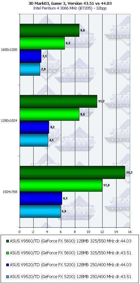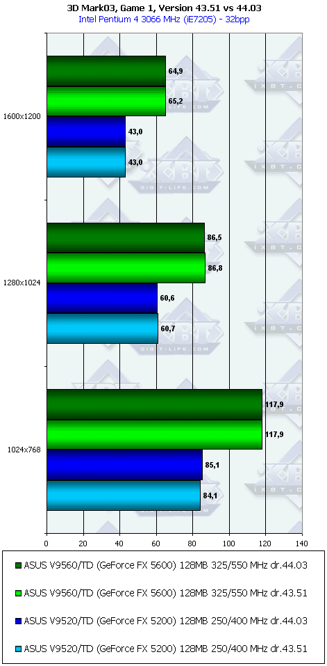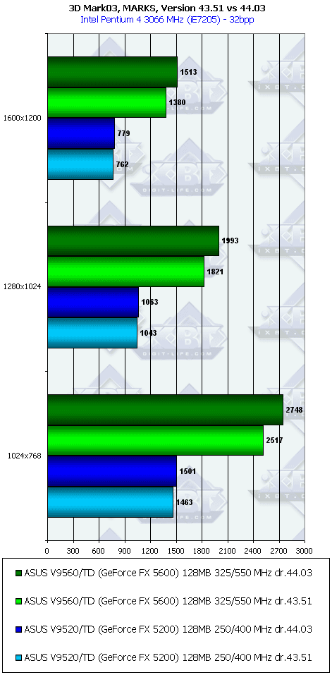 Что касается разницы между версиями драйверов 43.51 и 44.03, то, как мы видим, она встречается практически только в 3DMark03, под который в последнее время все чаще и чаще "оптимизируют" драйверы. Но мы еще не проверяли разницу в игровых тестах, поэтому оставайтесь с нами, в следующем материале мы это проверим.