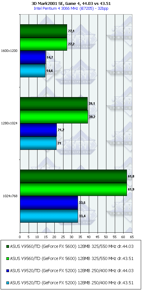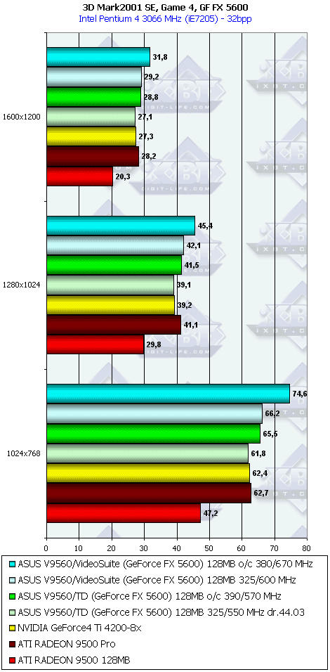 У GF FX 5200 снова проигрыш. А вот 5600-е очень неплохо выступили!