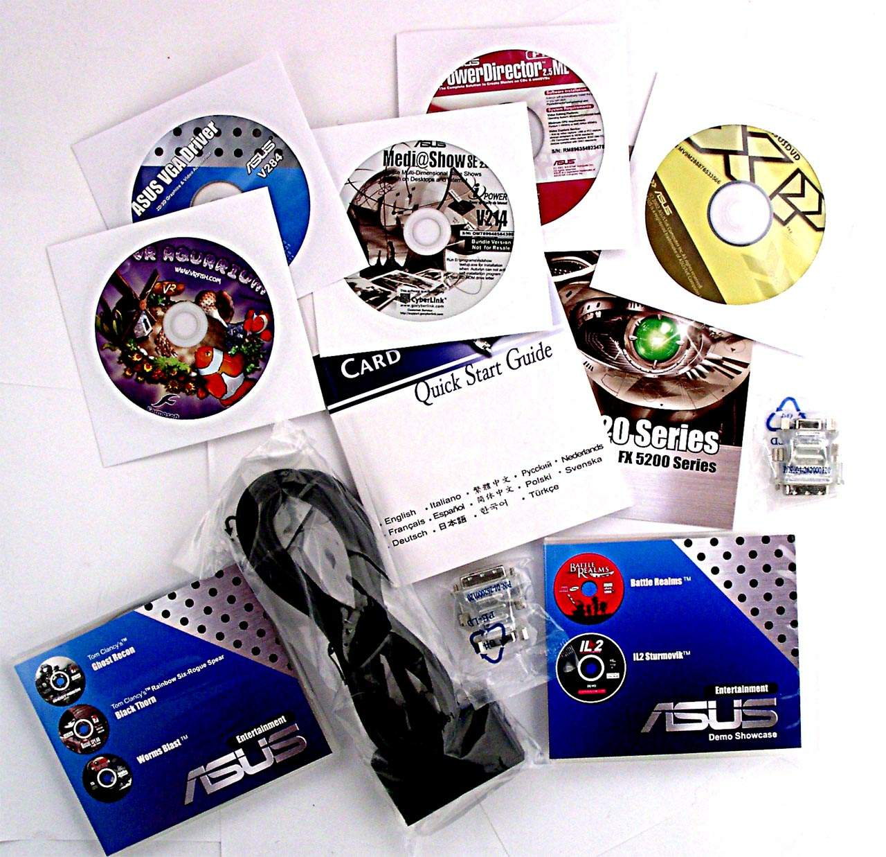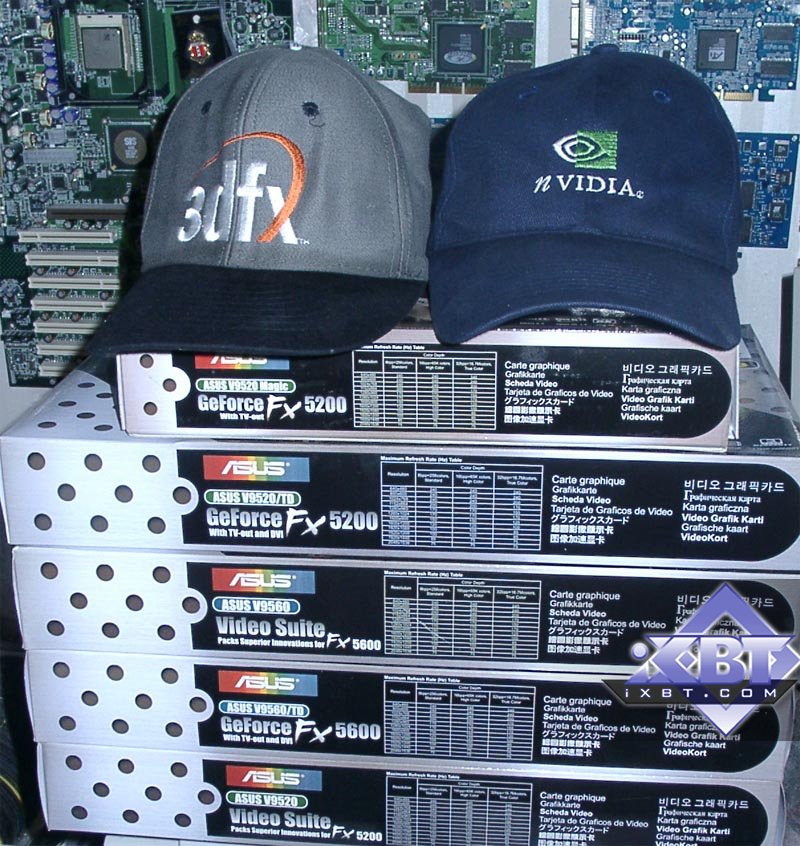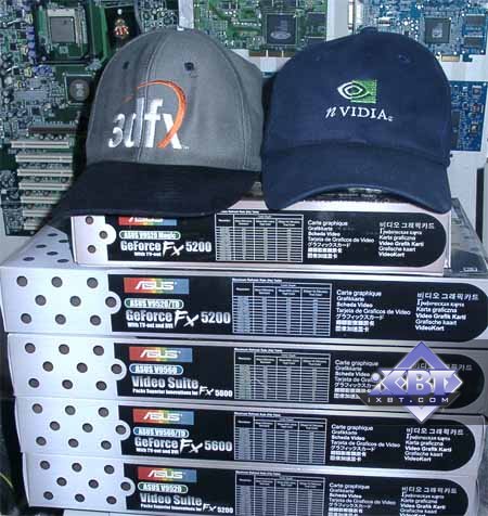 Итак, в нашей лаборатории побывало 5 карт от славной фирмы ASUSTeK. Три карты на базе GeForce FX 5200 и две на базе GeForce FX 5600. Перед тем, как начать рассказ о самих продуктах, хочу отметить одну важную особенность видеокарт от этой тайваньской (а может уже и где-то "российско-народной") компании: все видеокарты поставляются в Retail-упаковках, снабженные хорошим комплектом ПО. Если вдруг вам будут предлагать подобные изделия в OEM-упаковке, то уже одно это может стать причиной сомнений а не подделка ли это? Впрочем, практически все 5 карт от ASUSTeK представляют собой уникальные изделия собственных разработок инженеров ASUS, поэтому их подделать весьма трудно, да и дорого.