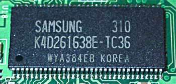 | Микросхемы памяти производства Samsung. Время выборки у микросхем памяти 3.3ns, что соответствует частоте работы примерно 300 (600) МГц, на какой память и тактована. Частота работы GPU 325 MHz. Прошу обратить внимание на повышенную частоту работы памяти. | ![]() |