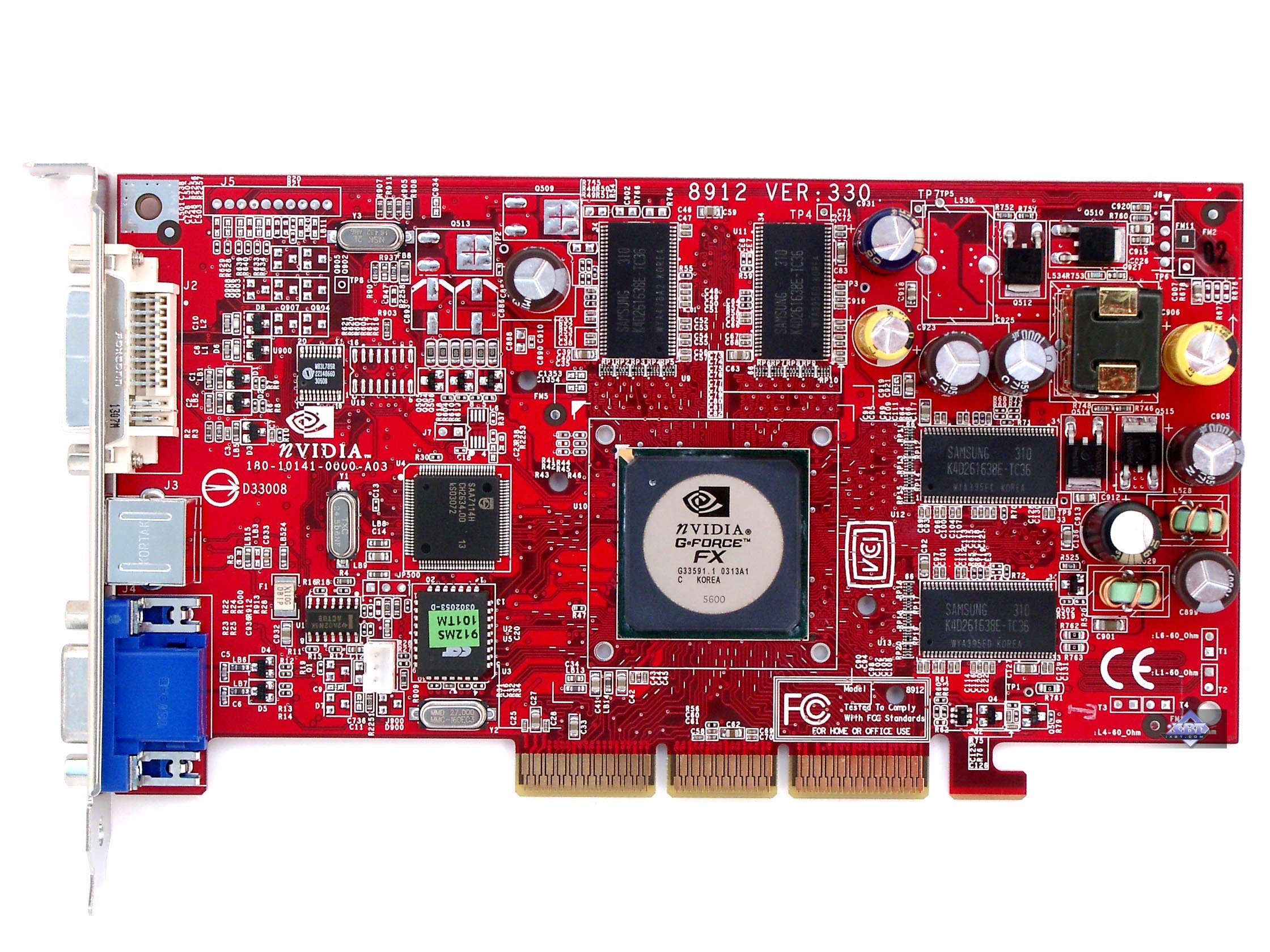 Ведь этот GPU выполнен уже по 0.13 мкм техпроцессу. Обратим внимание на то, что он сделан в Корее. Как известно, у TSMC нет фабрик (ни по выращиванию кристаллов, ни по упаковке чипов) в Корее. А у IBM есть. Поэтому очень даже вероятно, что GeForce FX 5600 производятся уже на мощностях IBM.