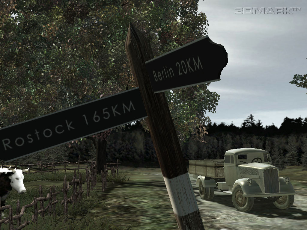 Небо также получено при помощи пиксельных шейдеров 2.0, для солнечных бликов используется реализованная