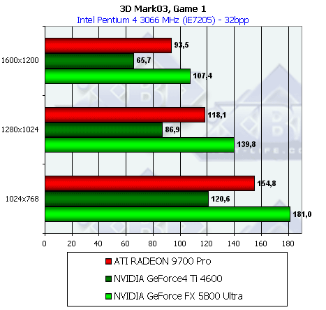 Как мы видим, 3DMark03, вопреки ожиданиям, не стал полноценным DirectX 9.0 или хотя бы DirectX 8.1 пакетом,