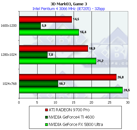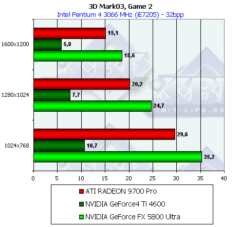 В целом NV30 держится молодцом. Но засчет чего? Давайте не будем спешить, пройдем по четырем игровым тестам,