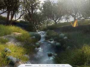 Каждый лист на деревьях отдельно анимирован при помощи вершинных шейдеров 2.0. Трава анимирована